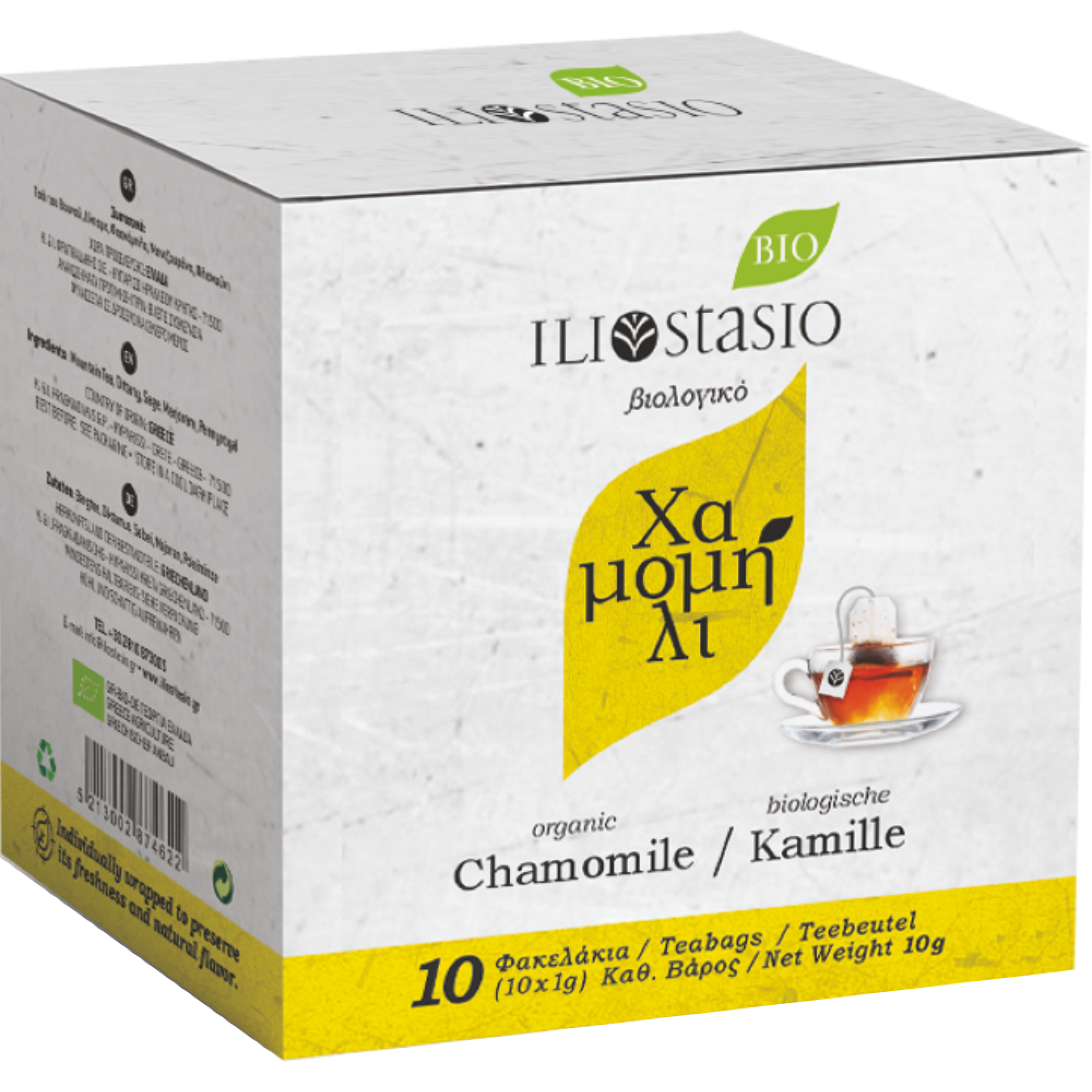 Organska kamilica iz kolekcije ILIOSTASIO Cretan Herbs jedna je od najpoznatijih aromatičnih biljaka sa Krete. Tradicionalno se stoljećima koristi kao antiupalno, antioksidant, blagi adstrigent i lijek za zacjeljivanje. Koristi se za liječenje rana, čireva, ekcema, gihta, iritacija kože, opeklina, neuralgije, reumatskih bolova, hemoroida, mastitisa i drugih tegoba.